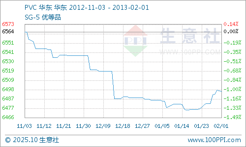 【摘要】生意社02月01日讯 现货价格:据生意社橡塑分社数据检测显示,本月国内PVC生产者均价微涨。以五型电石料为例,月初生产者均价维持在6486元/吨左右,月末微....